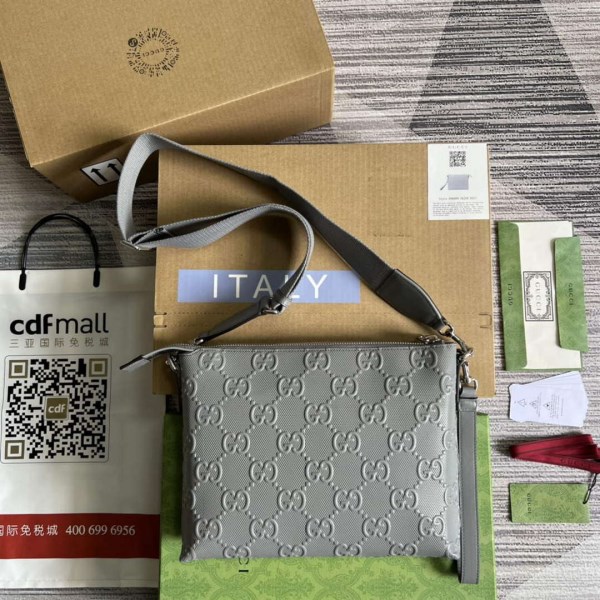Gucci 696009 GG Embossed Medium Messenger Bag Gray