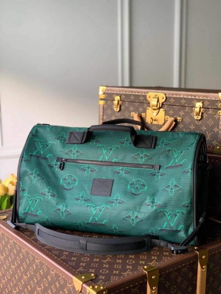 LV M45602 Louis Vuitton 2054 Reversible Keepall Bandouliere 50 Monogram Black And Green