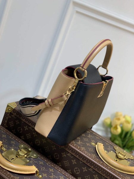 LV M58608 Louis Vuitton Capucines MM Handbag Black Apricot