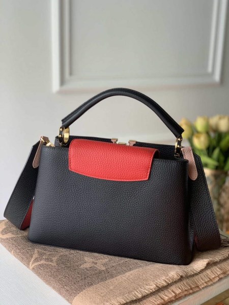 LV M57518 Louis Vuitton Capucines MM Handbag Black and Red