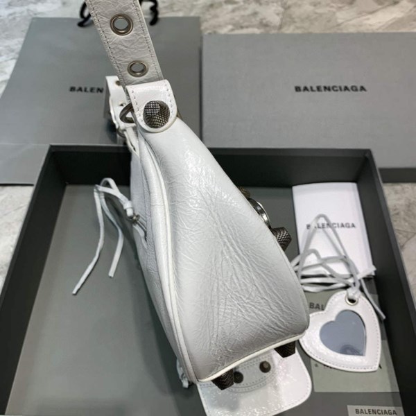 Balenciaga 67130723 Women’s Le Cagole Small Shoulder Bag Arena lambskin In White