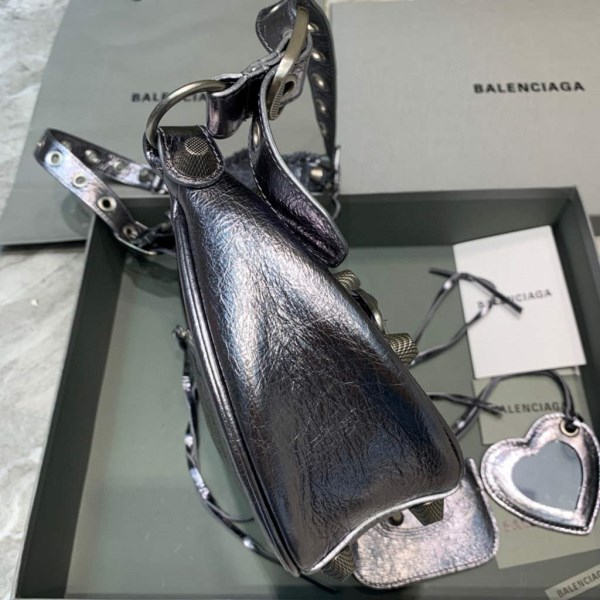 Balenciaga 67130723 Women’s Le Cagole Small Shoulder Bag Arena lambskin In Silver