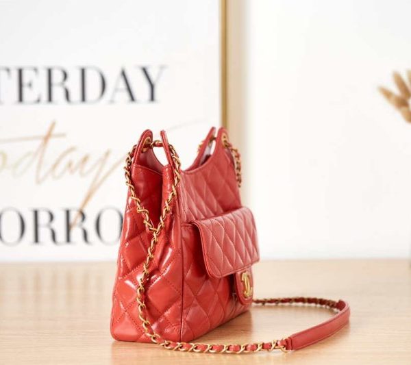 Chanel AS3690 Hobo Handbag Shiny Crumpled Calfskin & Gold-Tone Metal Red