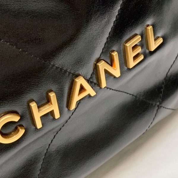 CHANEL AS3313 22 Backpack Shiny Calfskin Gold Black