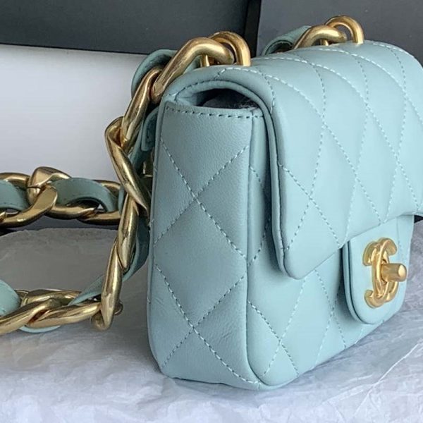 Chanel Mini Flap Bag Lambskin Gold-Tone Metal AS3213 Blue