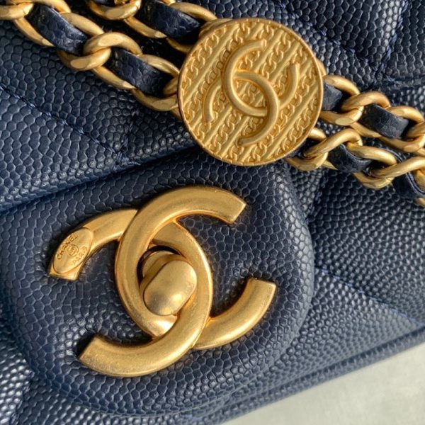Chanel Mini Flap Bag Shiny Calfskin Gold-Tone Metal AS3368 Navy Blue