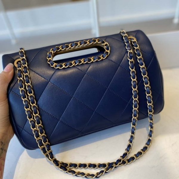 Chanel AS1010 31 Larage Shopping Bag Shiny Lambskin Navy Blue