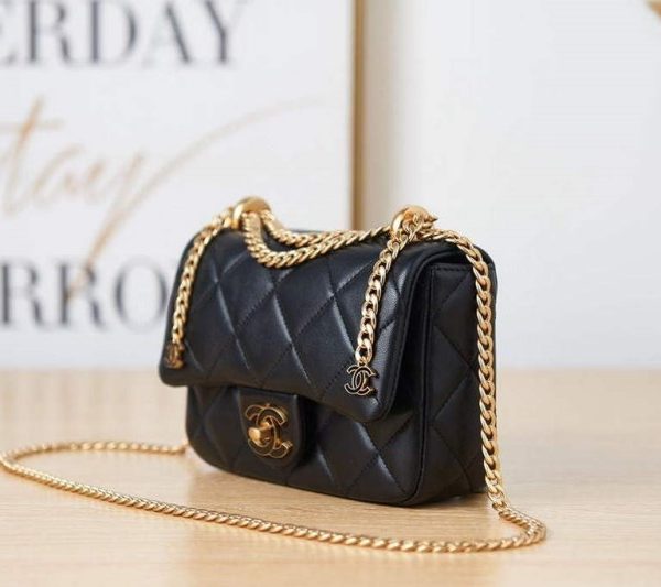 Chanel AS3205 Mini Flap bag lambskin gold Black