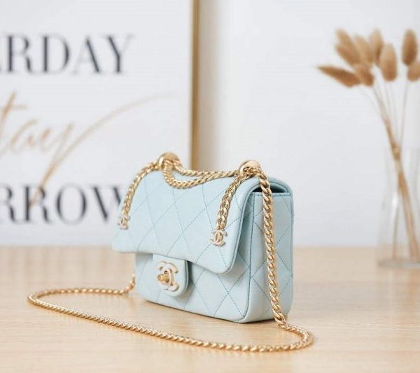 Chanel AS3113 Mini Flap Bag Lambskin Light Blue