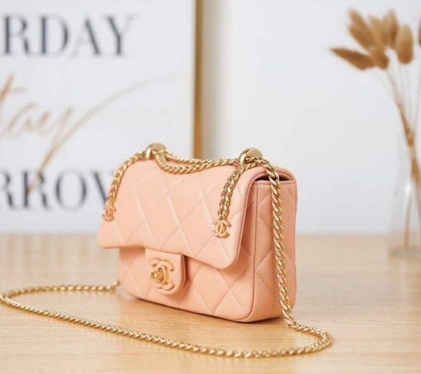 Chanel AS3205 Mini Flap bag lambskin gold Pink