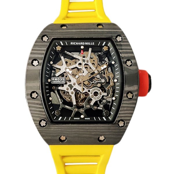 Richard Mille RM35 Men Mechanical Rubber Band Skeleton Dial