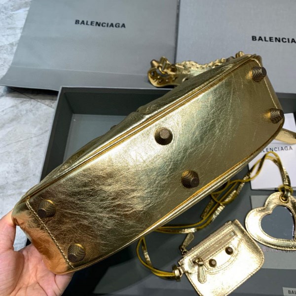 Balenciaga 67130723 Women’s Le Cagole Small Shoulder Bag Arena lambskin In Gold