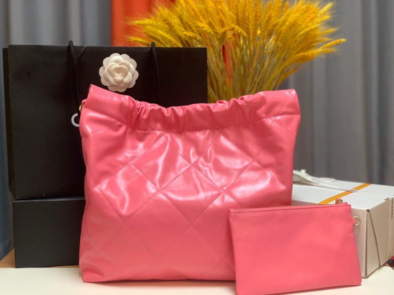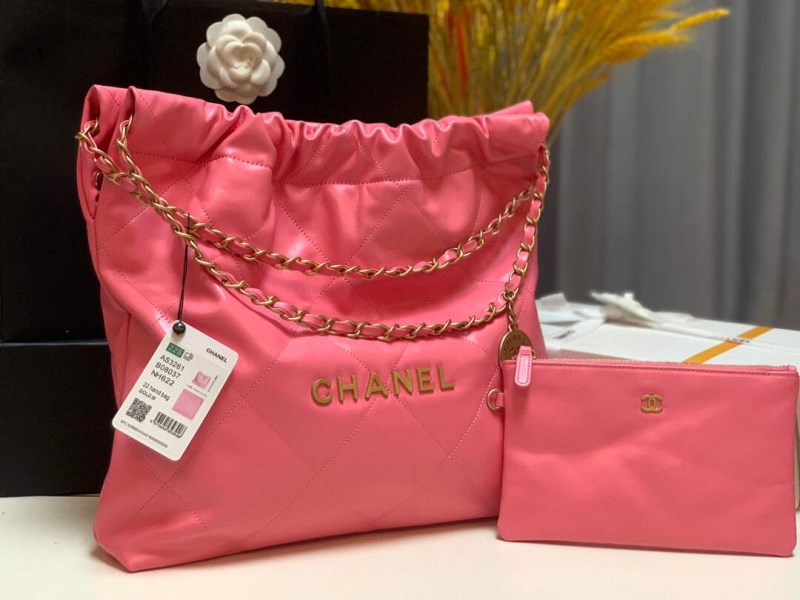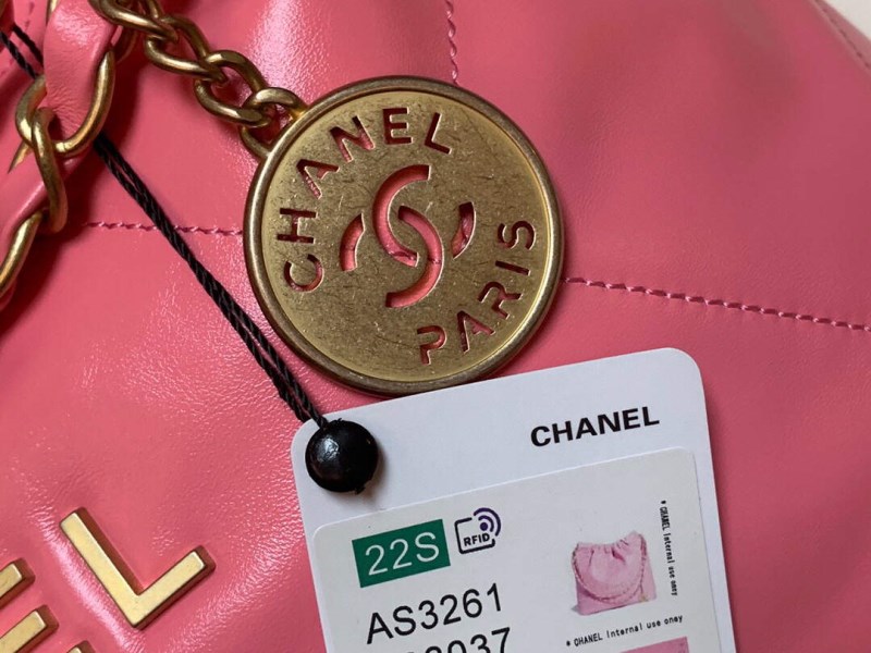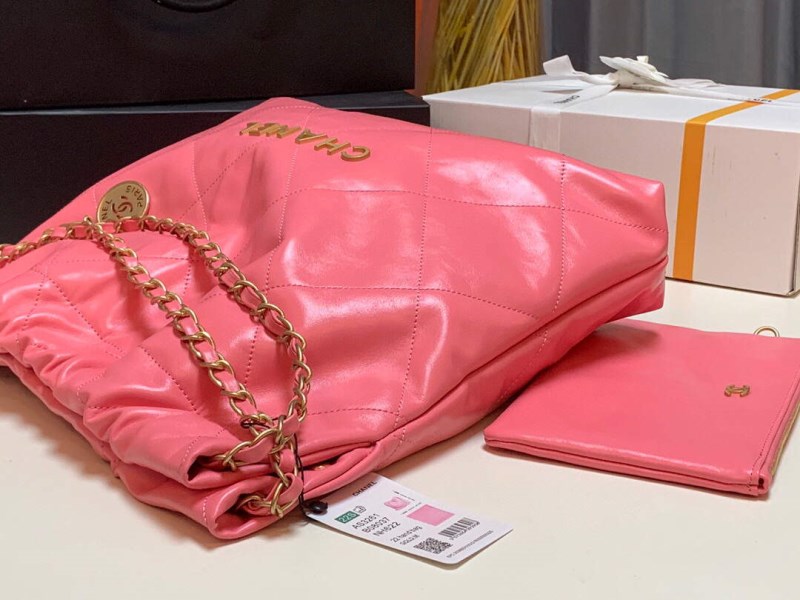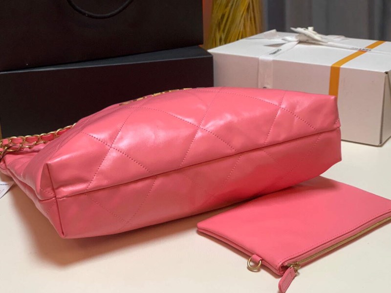 Chanel 22 Handbag Shiny Calfskin Gold AS3261 Pink