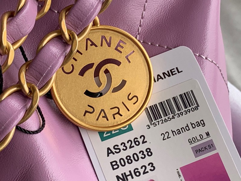 Chanel 22 Large Handbag Shiny Calfskin Gold-Tone Metal AS3262 Yellow
