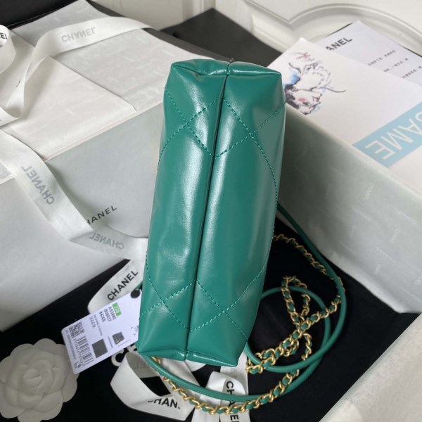 Chanel 22 Mini Handbag AS3980 Shiny Calfskin & Gold-Tone Metal Green