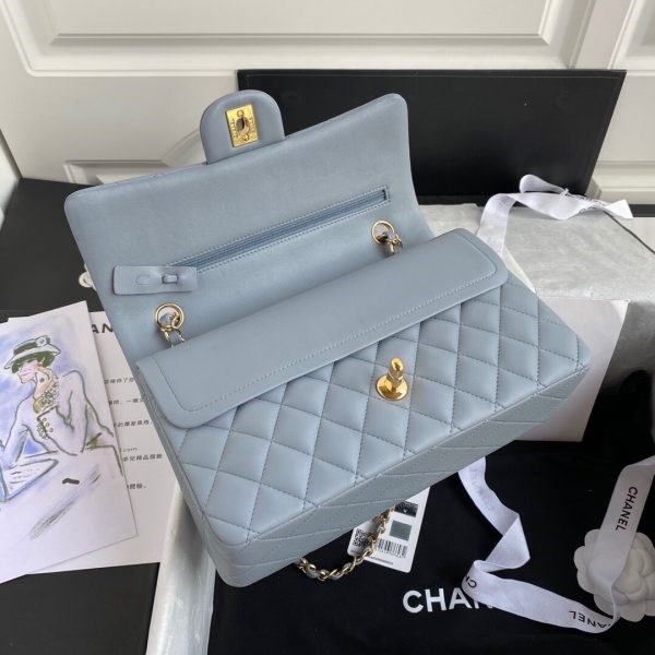 Chanel A01112 CF Quilted Classic Flap Bag in Grainy Lambskin Blue