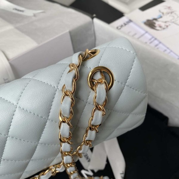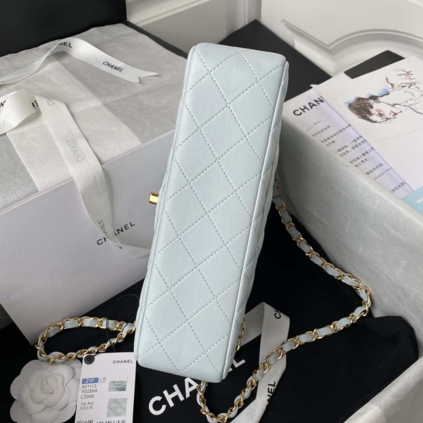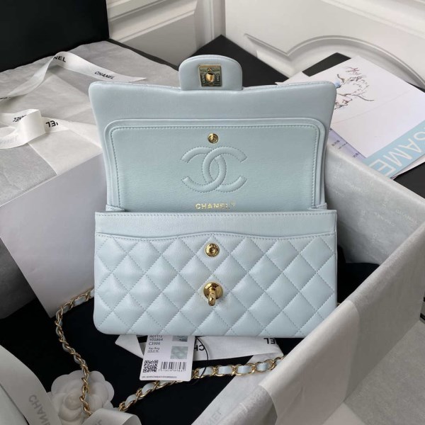 Be the first to review “Chanel A01113 Flap Handbag Classic Bag Lambskin Light Blue Gold”