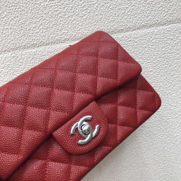 Chanel A69900 Mini Flap Bag Grained Calfskin Red Silver