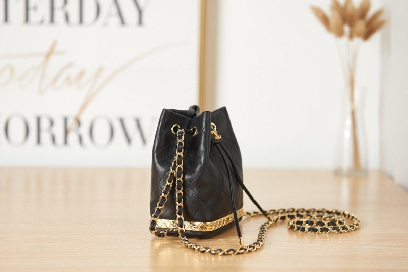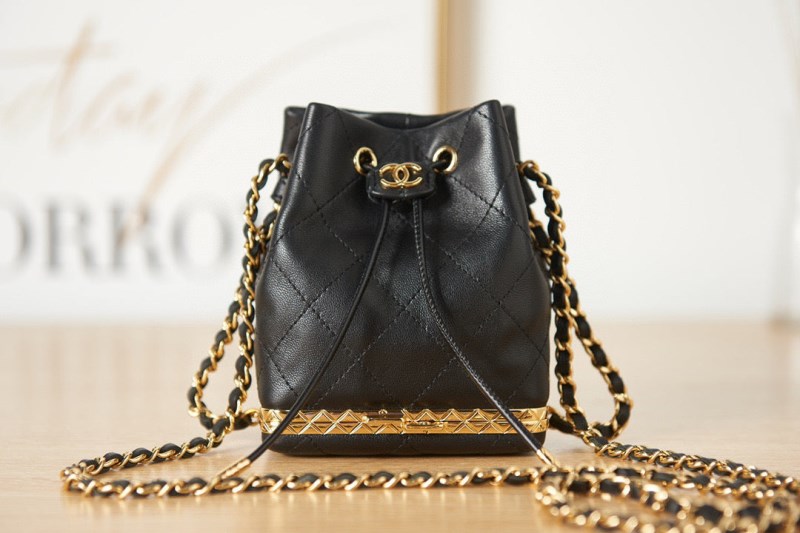 Chanel AP2750 Small Bucket with Chain Lambskin in Black