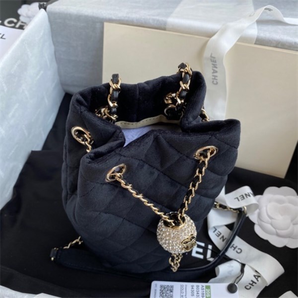Chanel’s latest catwalk model classic small bucket bag velvet fabric with rhinestone pull buckle cute to the extreme