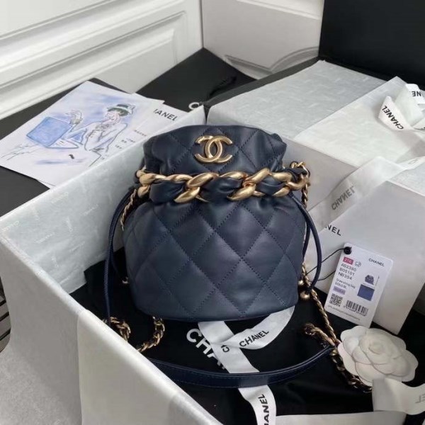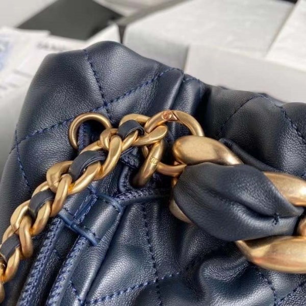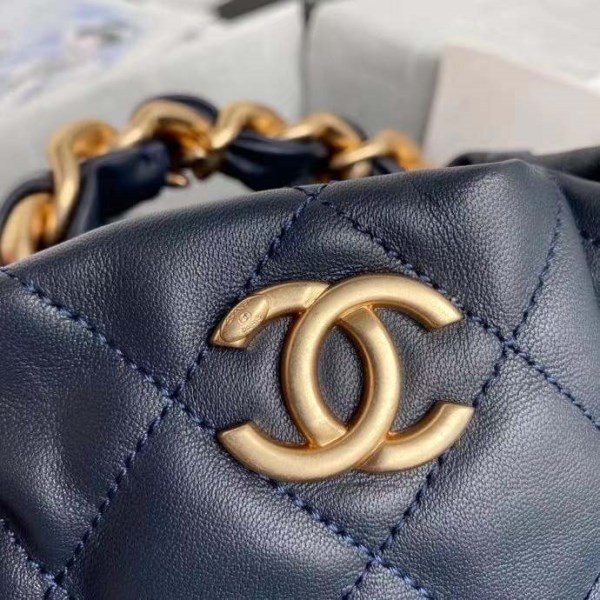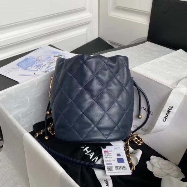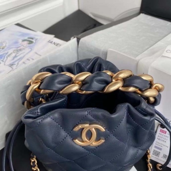 Chanel AS2390 Drawstring Bag Shiny Lambskin B05101 Navy Blue