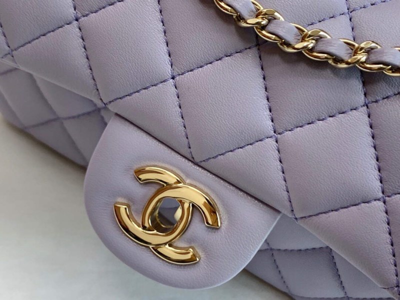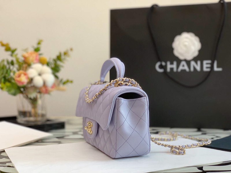 Be the first to review “Chanel AS2431 Mini flap Lambskin bag with top handle Purple Light gold”