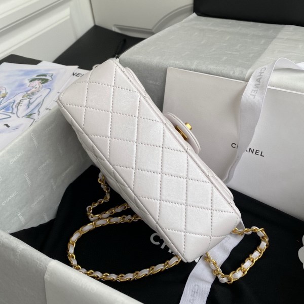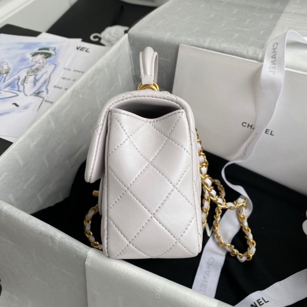 Chanel AS2431 Mini flap Lambskin bag with top handle white