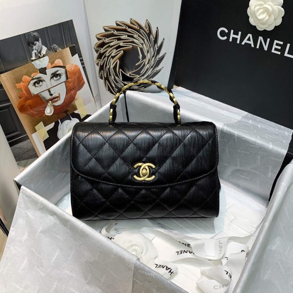 Chanel AS2478 Flap CC Wrapped Bag with Top Handle Black
