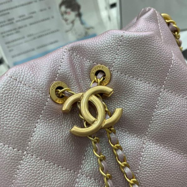Chanel AS2859 Bucket Bag Shoulder Bag Shiny Grained Calfskin Light Pink