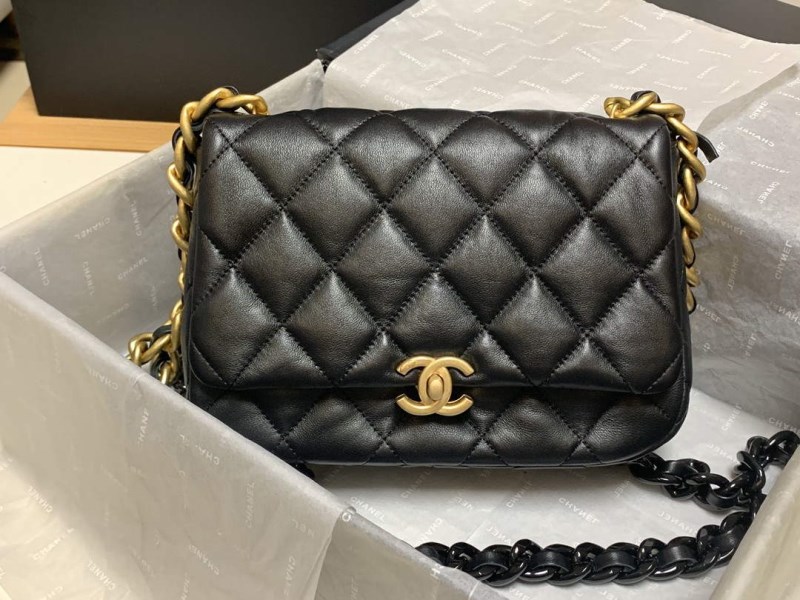 Be the first to review “Chanel AS3206 Small Flap bag lambskin gold Black”