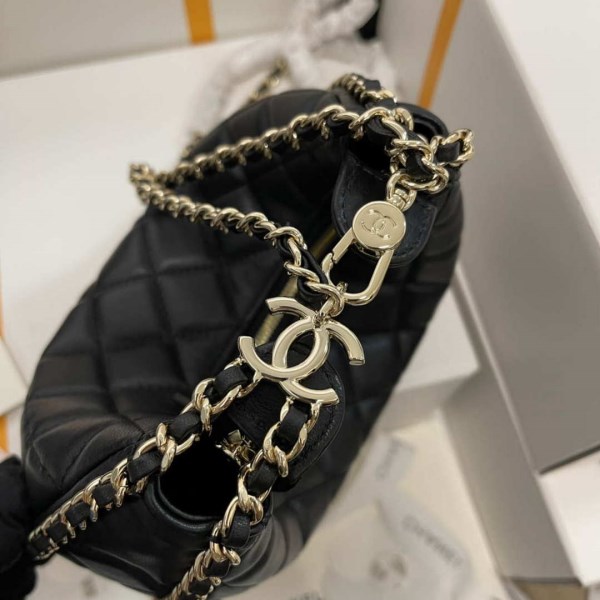 Hobo Bags of the Cruise 2022/23 collection: Hobo Handbag, shiny crumpled calfskin & gold-tone metal, White on the CHANEL official website