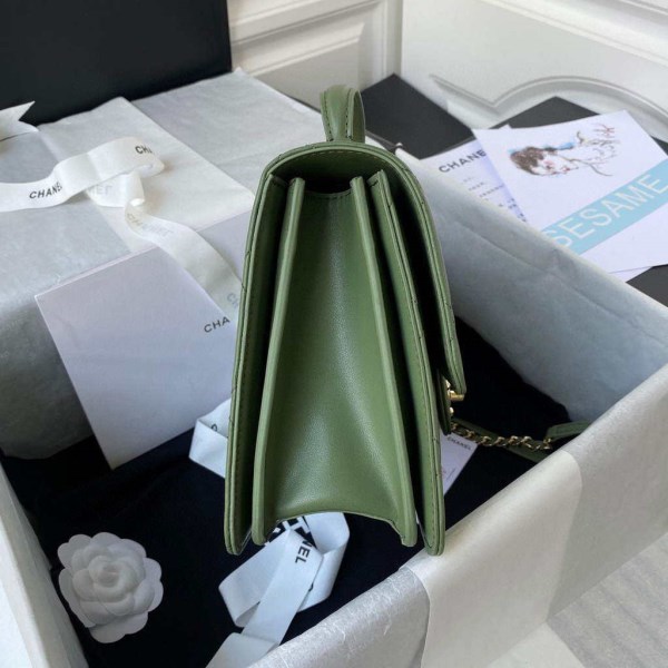 Chanel CC AS2681 Flap Bag With top Handle Calfskin Green