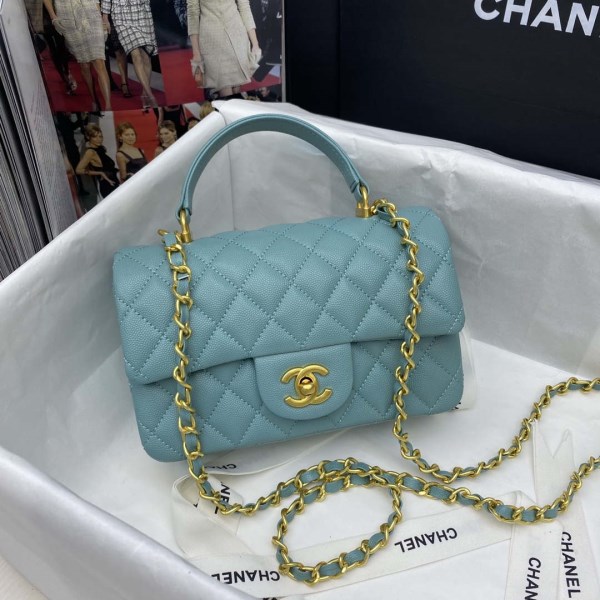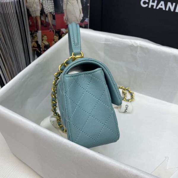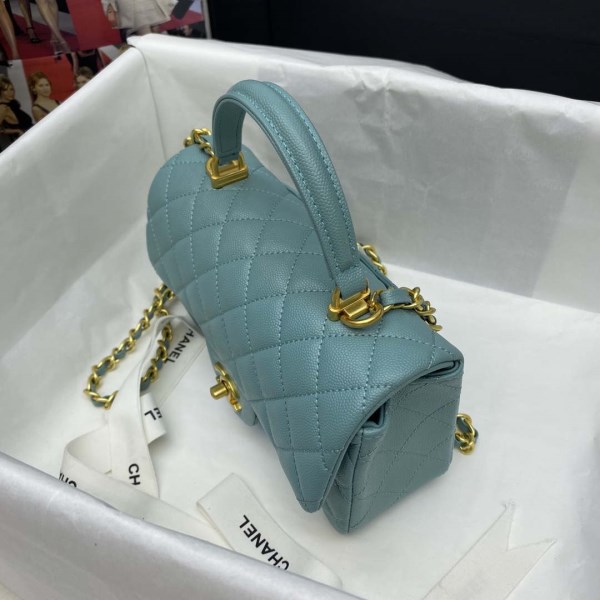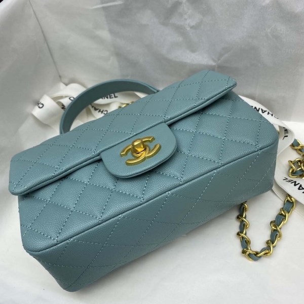 Chanel Mini Flap Bag with top Handle AS2431 Grained Calfskin White