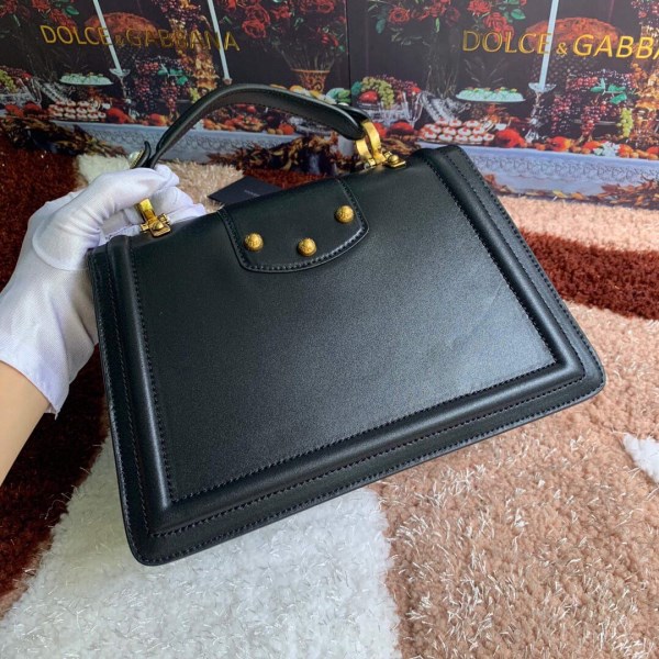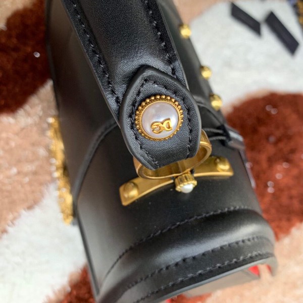 - Dolce & Gabbana bicolor leather bag with top handle and removable and adjustable strap. It features a flap with clasp closure and DG Barocco monogram with decorative pearls. Leather lining, two slit compartments, central compartment and zip pocket. Gold-tone hardware.