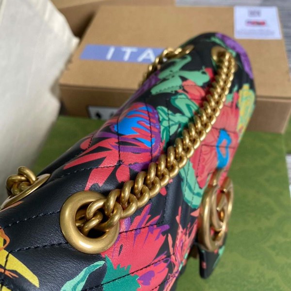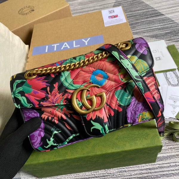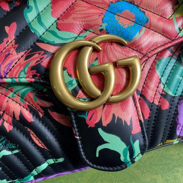 The Gucci Aria collection is an exploration of the House’s most emblematic codes and symbols. A member of the Beloved family, the GG Marmont is synonymous with its matelass?? leather and monogram hardware. Here, the small shoulder bag is reimagined with a new geometric take on its signature finish that combines vertical and diagonal motifs.