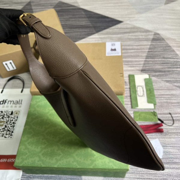 The Gucci Cosmogonie collection was presented against the backdrop of the historic Castel del Monte in Italy. The show brought together aesthetics from distant eras and geographies, and linked elements form the past with the present. This new crescent-shaped shoulder bag was shown on the runway and was inspired by the House’s archives, it is crafted in soft leather and features the Double G emblem??a code originally introduced in the 1970s.