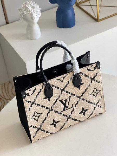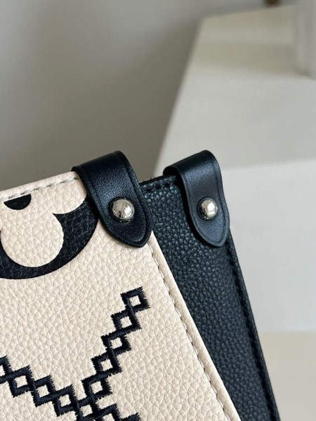 his Onthego MM tote features a stitched motif that echoes the quilted interior of Louis Vuitton’s original trunks. The Monogram Empreinte leather is first printed, then embossed and embroidered with the pattern, to create a rich, crafted effect. A statement piece of the season, the bag is a versatile companion that lends itself to a variety of carry styles.