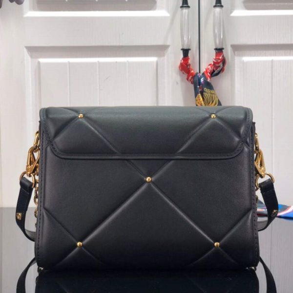 This quilted Twist MM handbag is made from lambskin leather and is accentuated by gold-color studs. This puffer aspect is found across numerous House accessories this season and is complemented by the signature LV Twist lock and chain, also in a gold color. The removable leather smart strap enables a variety of carrying options.
