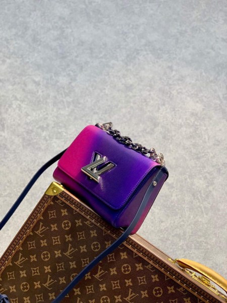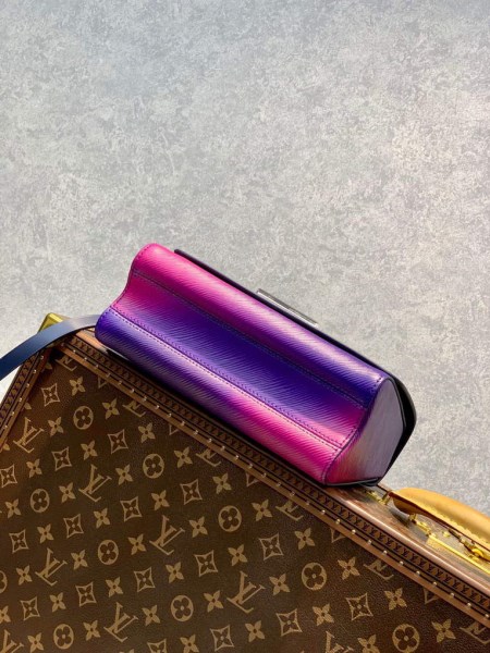 For Spring 22, a colorful reinterpretation of the Twist PM handbag. Made from Epi grained leather, this Twist PM handbag takes on the tones of sunset: vivid pink fading into dark blue. The all-over gradient treatment of the color is enhanced by the grain of the leather. A removable and adjustable leather smart strap allows multiple carrying options while a chunky bicolor chain brings style to this day-to-evening proposition.
