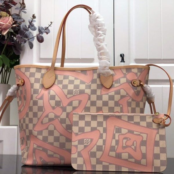 LV N41050 Louis Vuitton Neverfull MM Tote Bag Pink