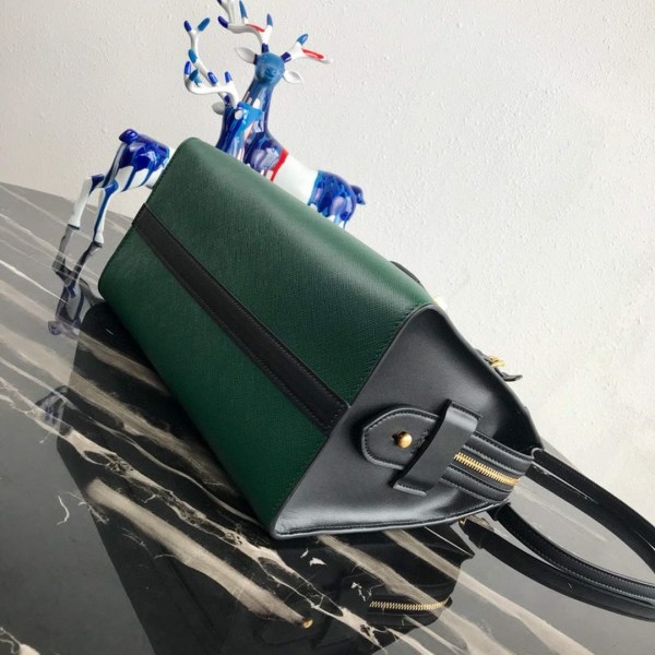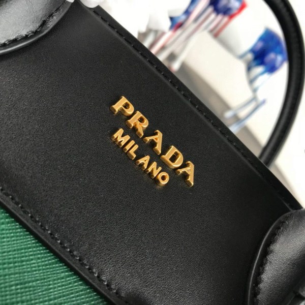 Prada 1BA046 Medium Esplanade Leather Tote Bag Green and Black