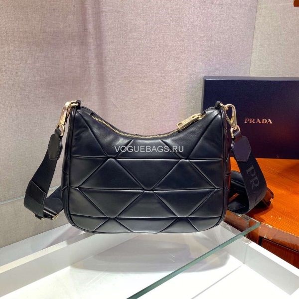 Prada 1BC151 Prada Padded Calfskin Shoulder Bag in Black