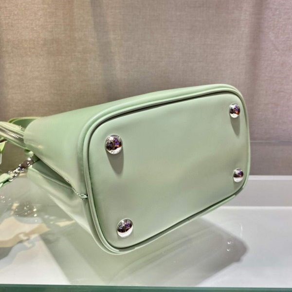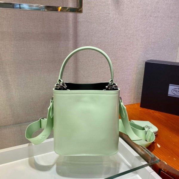 This modern, minimalist handbag in nylon, a distinctive material of the brand, is decorated with sophisticated details like the chain shoulder strap and the metal triangle logo.