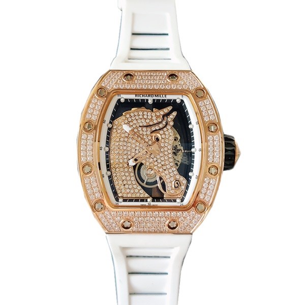 Richard Mille RM52-02 Men Mechanical Watch Horse Dial Diamond Bezel
