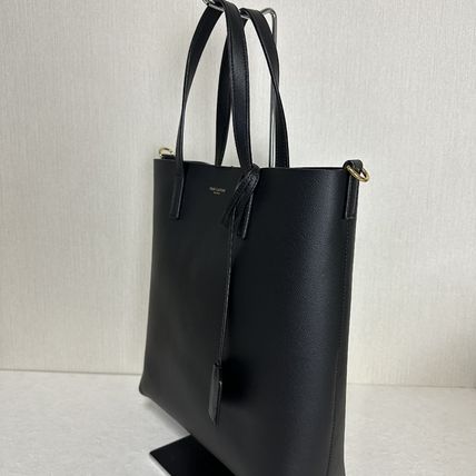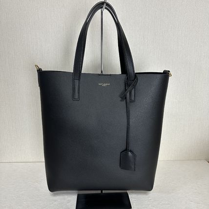 NORTH/SOUTH BAG WITH FLAT HANDLES, WITH A REMOVABLE STRAP, SNAP-BUTTON CLOSURE, AND LEATHER ENCASED YSL CHARM.